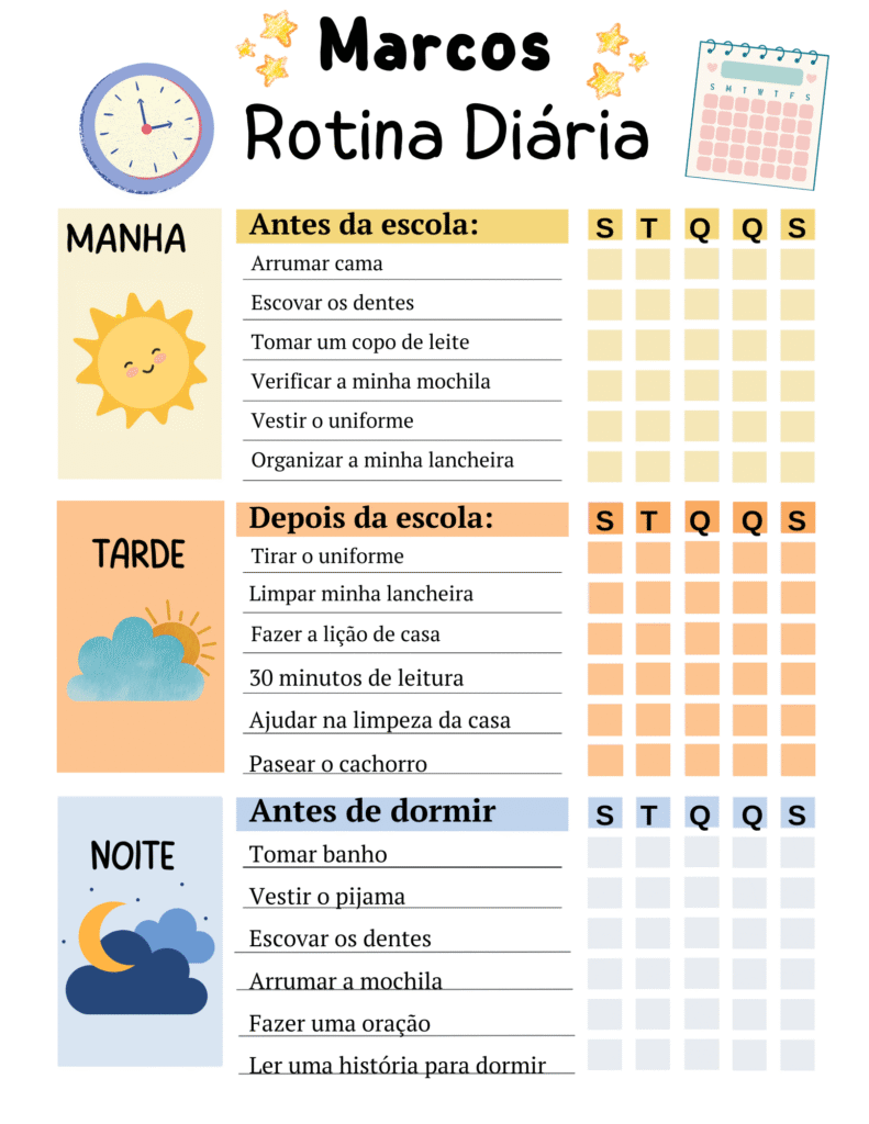 *ROTINAS PARA A MANHÃ, TARDE E NOITE